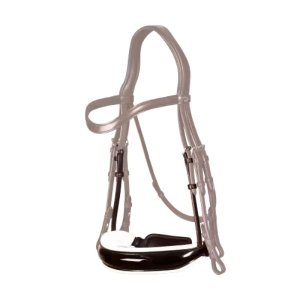 Dy’on Dressage Collection Flat Leather Patent Large Crank Noseband With White Padding