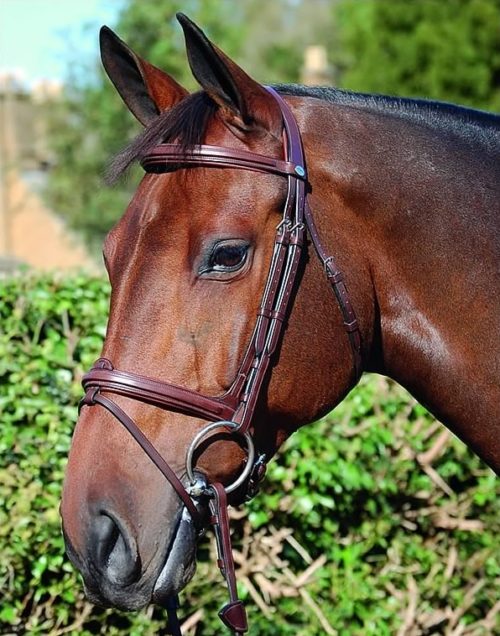 - Bridle in English leather with padded anatomic headpiece