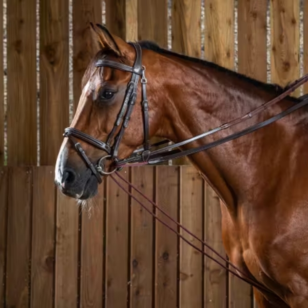 Leather/Nylon Draw Reins 5/8 5/8” (16 mm) leather grip 8 mm nylon cord Two snap hooks Draw rein attachment