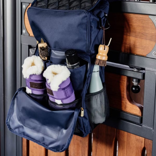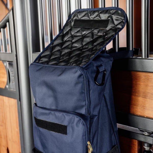 On the inside, the Stable Bag features several compartments to organize your stable accessories or brushes. The bag has 2 click buckles for easy attachment to your horse's stable.