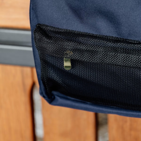The Stable Bag closes with a big and strong hook and loop closure. The bag features 3 mesh compartments, 2 on the sides and one in front. On the inside of the bag, there is also a mesh compartment. The bag closes with gold zippers that perfectly match with other Kentucky products.